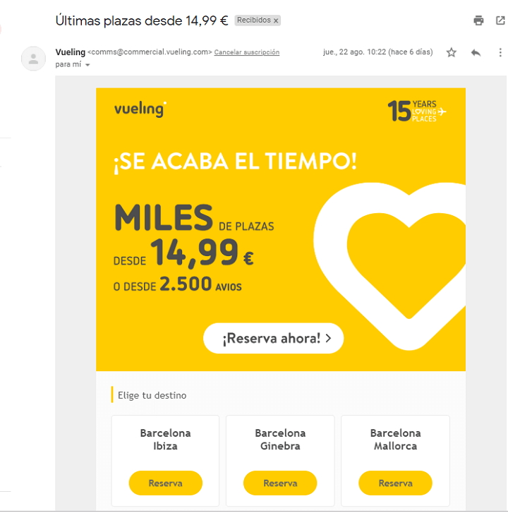 El contenido del email que se le envía a este tipo de usuario está concentrado en la venta, por lo tanto incluye uno o varios CTAs o incluso ofertas.