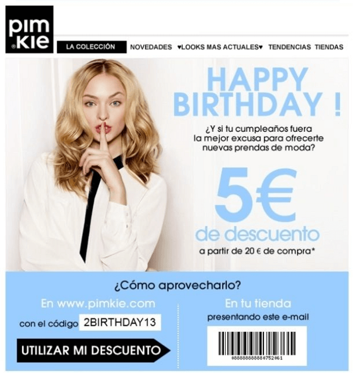 De esta manera podremos hacer envíos con mayor segmentación centrándonos en los intereses y preferencias de cada usuario. Un buen ejemplo es enviarle un email de felicitación el día de su cumpleños con un descuento en un producto que hemos identificado que es de su gusto.