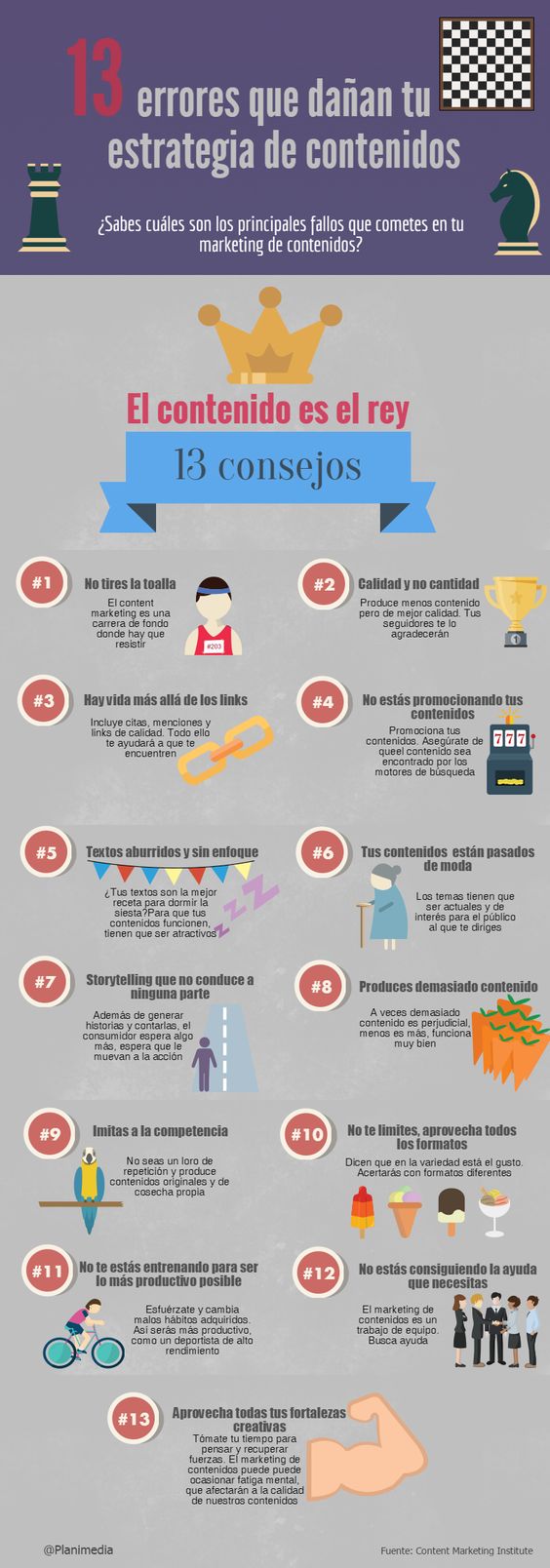 A continuación, te presentamos una infografía con los 13 errores que dañan tu estrategia de contenidos: