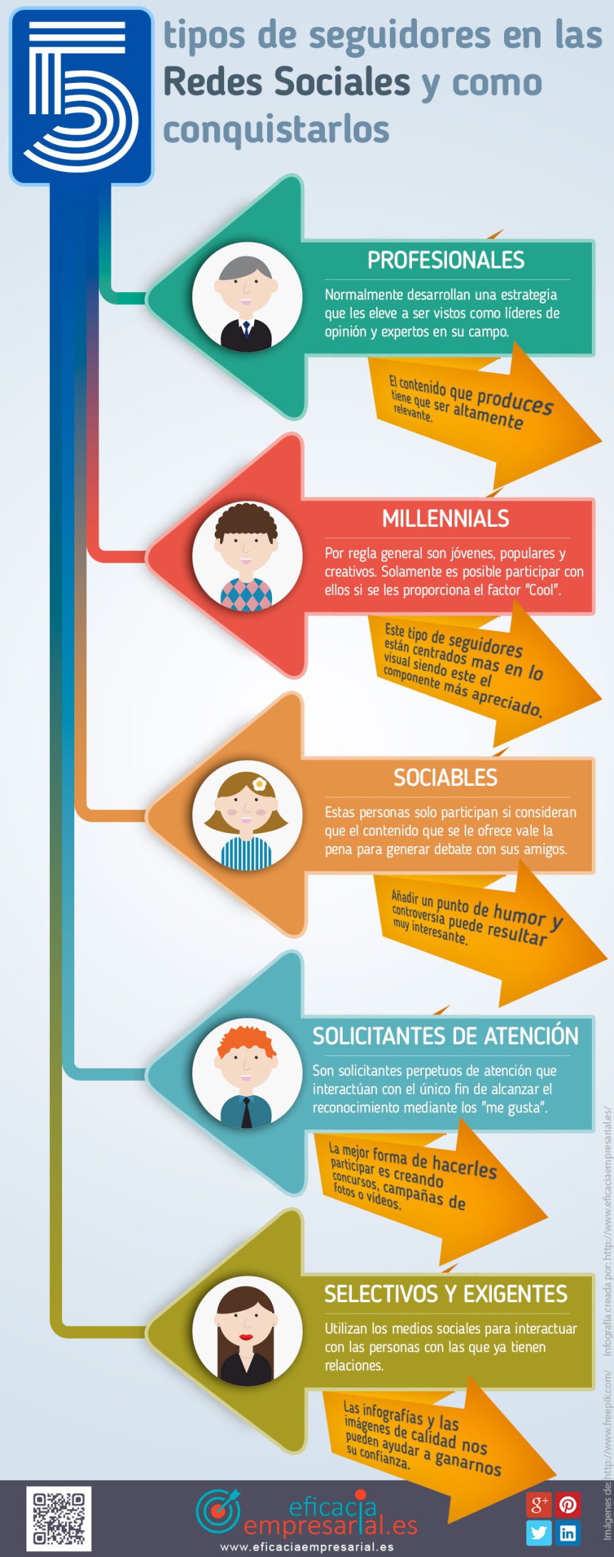 A continuación te dejamos una infografía que nos habla de 5 tipos de seguidores y algunas maneras en que podemos conquistarlos.