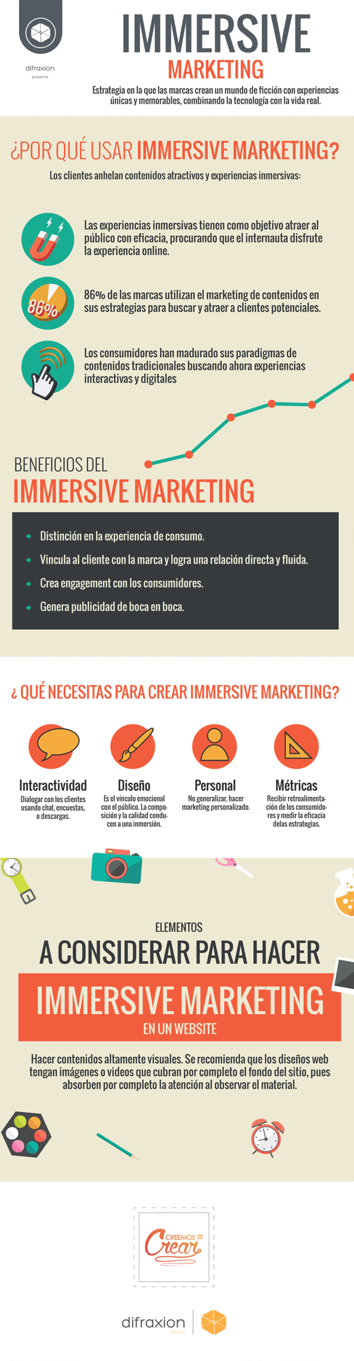 A continuación te dejamos una infografía que nos habla de qué es Inmersive Marketing.