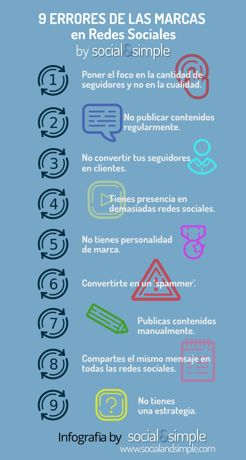 Por otro lado, también nos parece importante compartir con vos con la siguiente infografía los 9 errores de las marcas y empresas en las Redes Sociales.