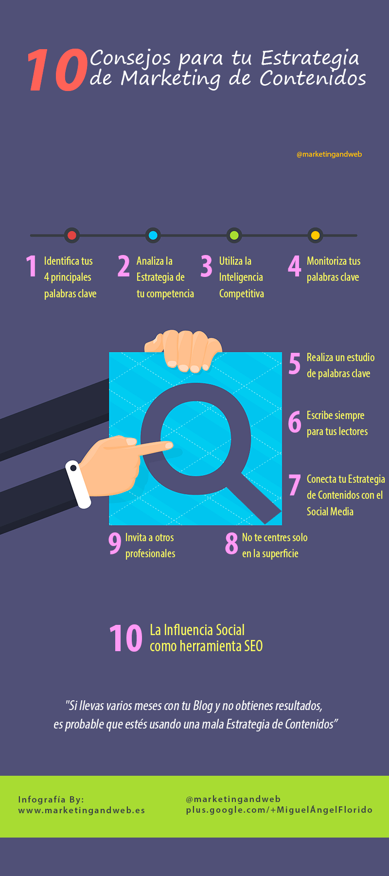A continuación, te presentamos una infografía con 10 consejos para tu estrategia de Marketing de Contenidos.