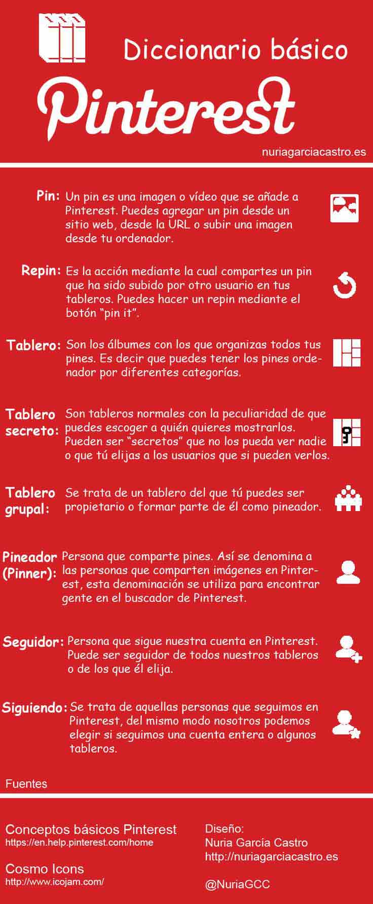 A continuación, podrás encontrar una infografía con un diccionario básico para Pinterest.