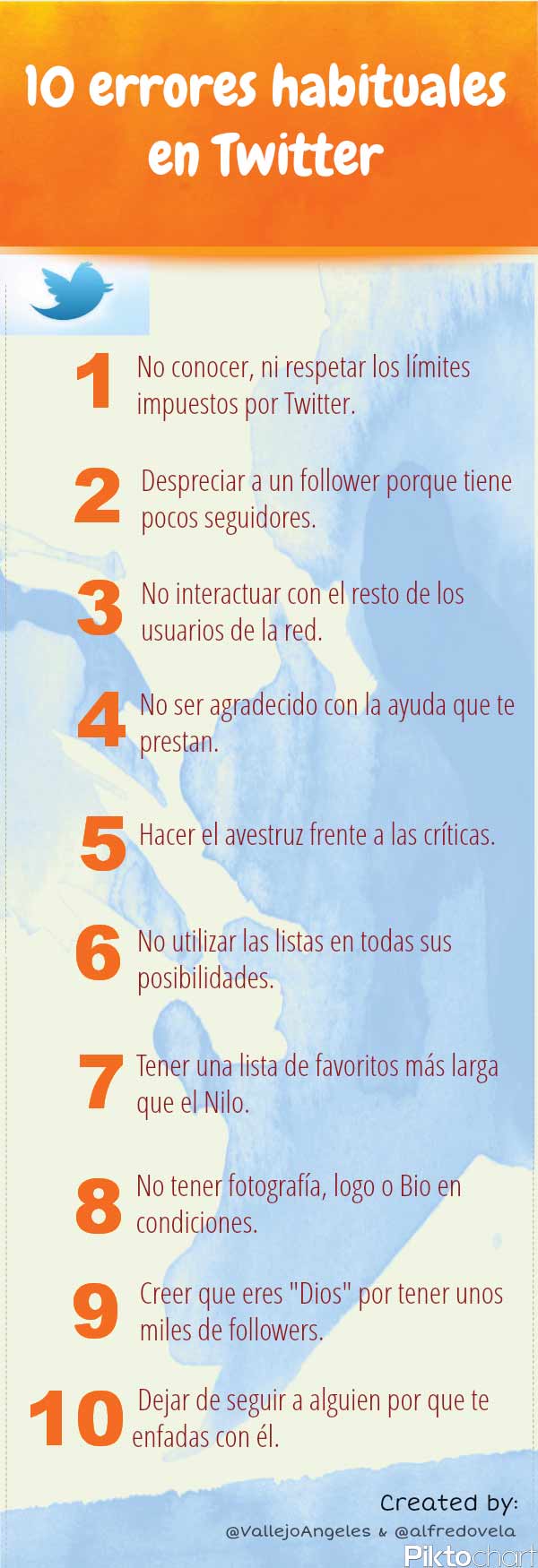A continuación, te presentamos una infografía con 10 errores habituales en Twitter.