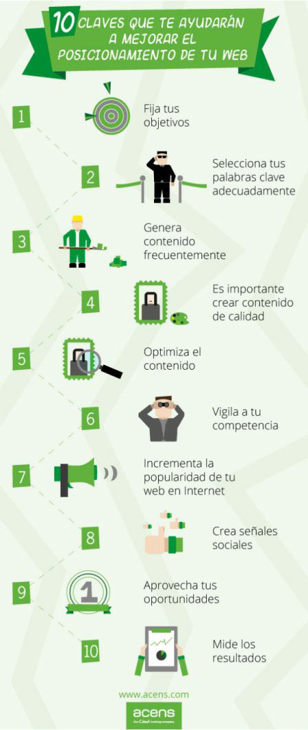 A continuación te presentamos una infografía que nos muestra 10 claves para mejorar el posicionamiento de tu empresa en la web. Si seguís estos pasos estarás más cerca de generar tráfico calificado a tu sitio y podrás ver un incremente de visitas que podrían transformarse en venta en un período corto de tiempo.