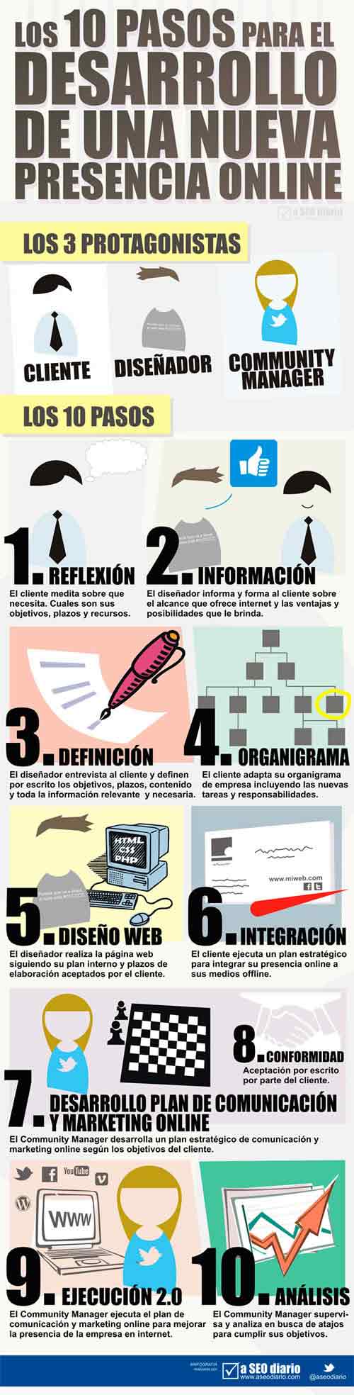 A continuación, te presentamos una infografía con 10 pasos para el desarrollo de una nueva presencia online.