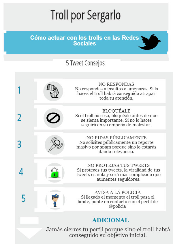 Infografía sobre cómo actuar con los trolls en las Redes Sociales.