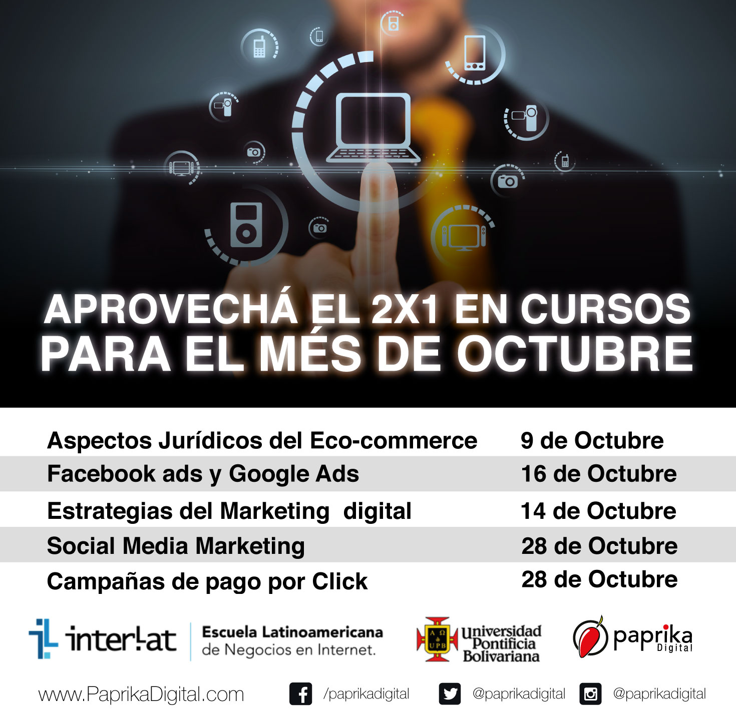 Tenemos un 2×1 en estos increíbles cursos virtuales con los mejores profesores y líderes en Marketing Digital en Latinoamérica. Esta promoción es por tiempo limitado. ¿Qué estás esperando para matricularte?