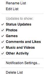 Por cierto, una vez creada la lista, se llega a ella y a otras que hayamos creado desde la columna de nuestra home en Facebook. Como no es tan sexy como otras funcionalidades de Facebook (ni se usa de forma masiva) es un tanto difícil llegar.